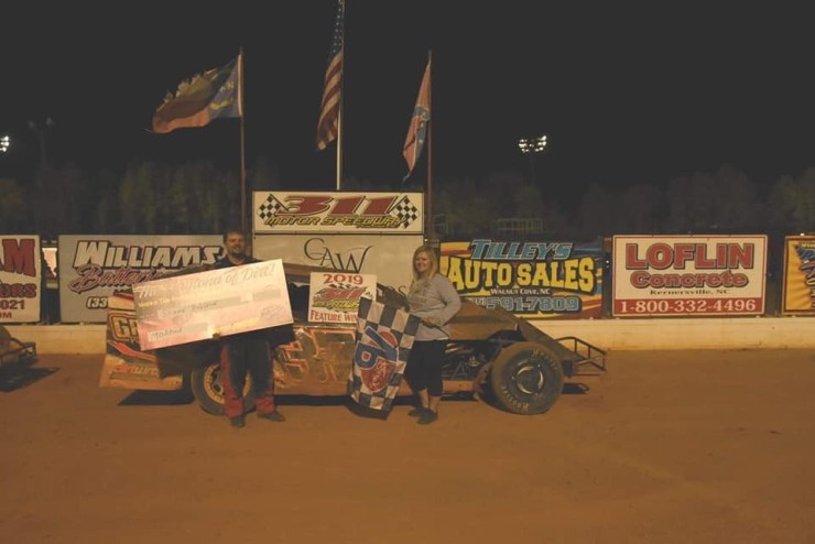 Finally picked up a win Saturday at 311 Speedway. Started last in the first heat race and finished 3rd so that put us starting 5th in the main. Worked our way up to 2nd about half way through the race. Track was extremely muddy but on the last next to last restart we got a good run on Trey but going into 1 he pulled high with some mechanical problems so that turned the lead over to us and we were able to capitalize on it.